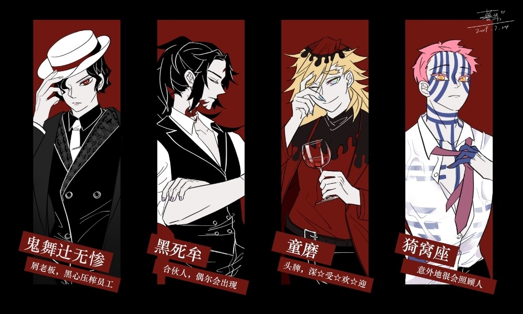 鬼滅之刃 如果無慘老闆開的是牛郎店 童磨會撩人成頭牌 猗窩座真的很會照顧人 竟然還勸煉獄老師來這裡